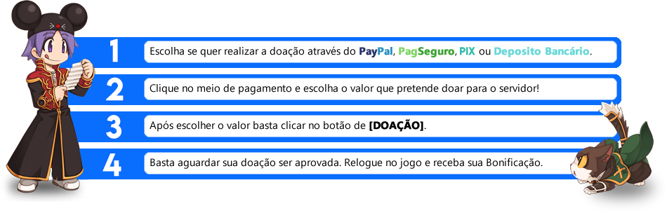 ► Todo valor doado é bonificado com nossa [Moeda de Doação], está é a forma de gratificação por você incentivar o crescimento do servidor.